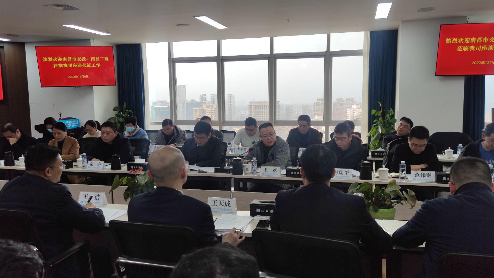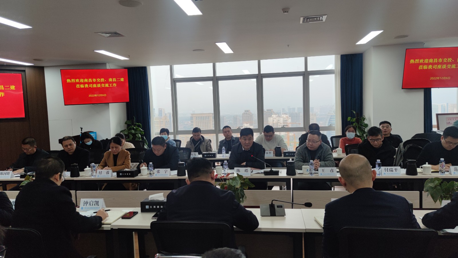 12月6日,南昌交投集團黨委委員、副總經(jīng)理陳皓率領(lǐng)公司領(lǐng)導(dǎo)班子及各部門負(fù)責(zé)人一行前往中建三局江西建投公司開展學(xué)習(xí)座談交流,受到江西建投公司領(lǐng)導(dǎo)及員工的熱情接待。