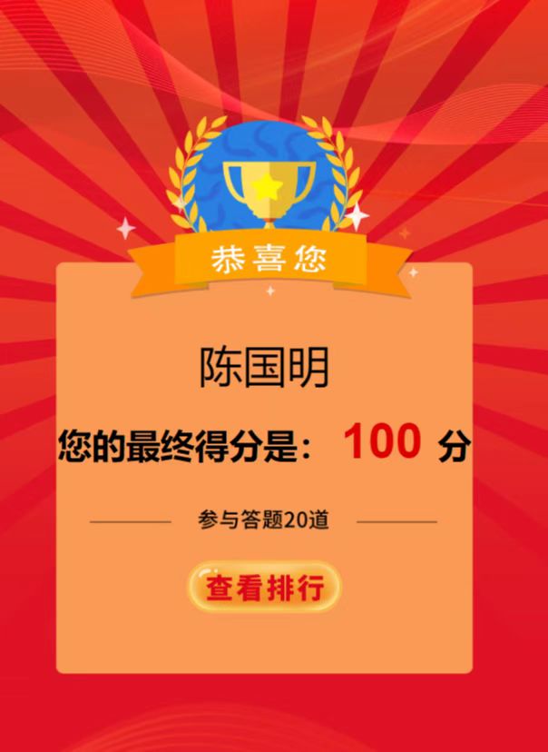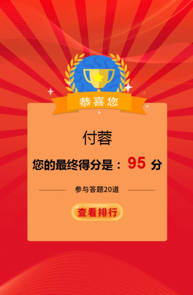 該競(jìng)賽是以“傳承紅色基因 守牢紀(jì)法底線”為主題,通過線上學(xué)習(xí),線上答題的形式,以考促學(xué),以考驗(yàn)效,營造了學(xué)習(xí)“四史”的濃厚氛圍,重點(diǎn)教育黨員干部深刻認(rèn)識(shí)“兩個(gè)確立”的決定性意義,增強(qiáng)“四個(gè)意識(shí)”、堅(jiān)定“四個(gè)自信”、做到“兩個(gè)維護(hù)”。同時(shí),把答題活動(dòng)作為加強(qiáng)黨員干部紀(jì)法教育的重要載體進(jìn)行落實(shí),激發(fā)黨員干部學(xué)習(xí)紀(jì)法知識(shí)的積極性、主動(dòng)性,牢固樹立紀(jì)法意識(shí),自覺嚴(yán)守紀(jì)律規(guī)矩、不逾紀(jì)法底線,廉潔從政從業(yè)、規(guī)范行權(quán)用權(quán)。